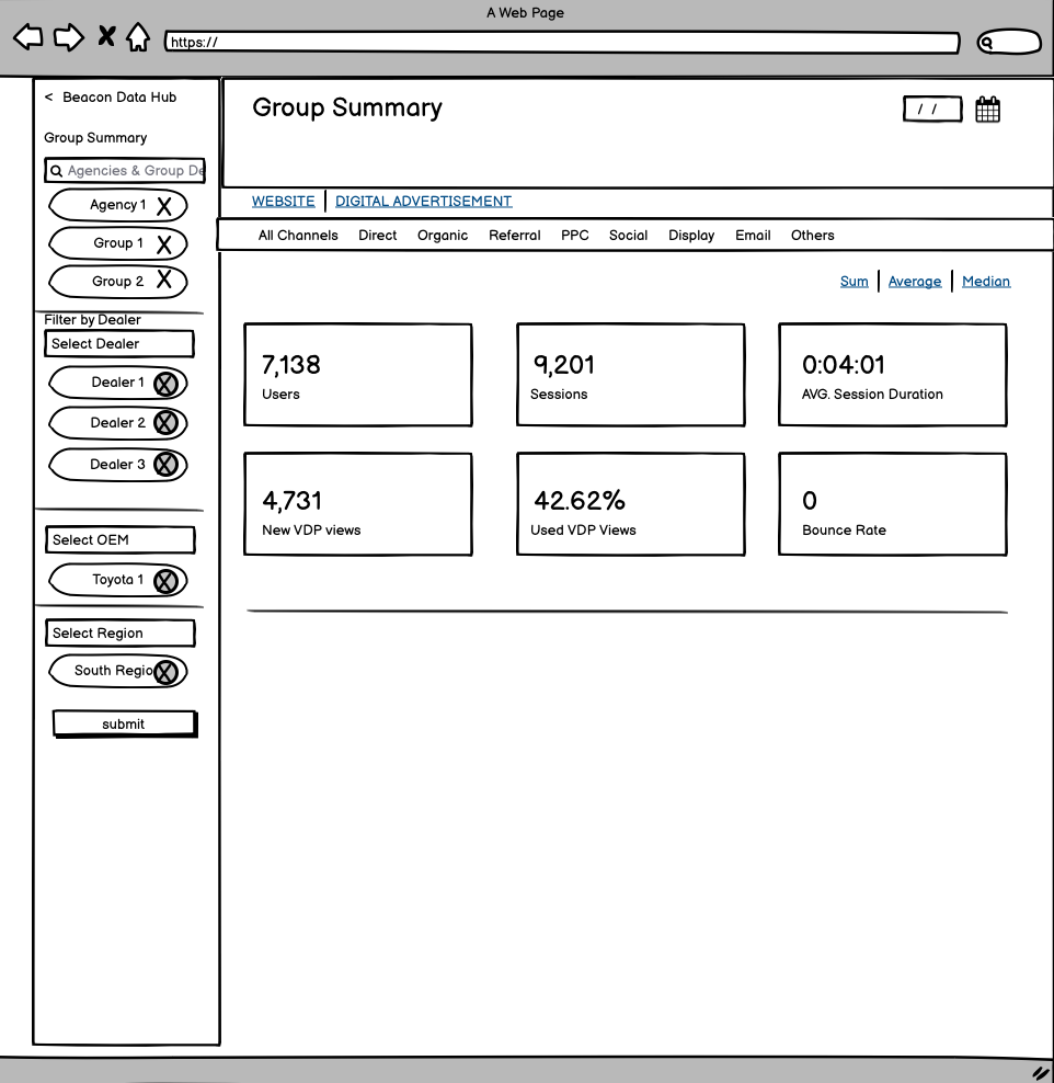 Problem: Users are unable to view rollup metrics for Dealer Group sites or Agencies to understand the total performance of their dealerships.