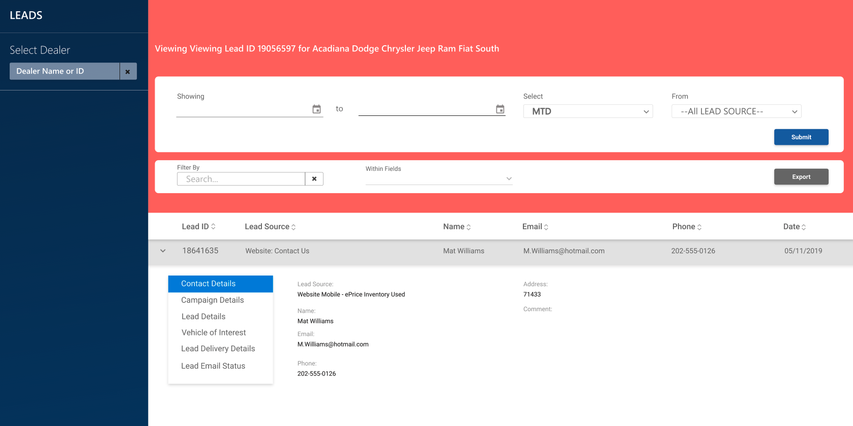 As a dealer, internet marketing representative, and internal CMS user, DealerOn wanted to identify dealerships’ phone leads - being able to see phone calls made to the dealership (may include multiple departments). Lead ID, Time the call was placed, incoming source, Email. Capturing the data as a lead, allows marketing managers, sales teams, and internal Dealoron employees to accurately track individual lead types and enables anyone to respond to potential customers.